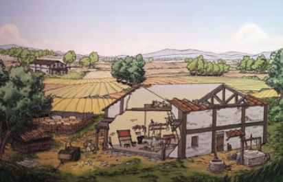 Disegno ricostruttivo di una villa rustica di età romana | Resti della Villa di San Vitalino, Calderara di Reno (BO) |